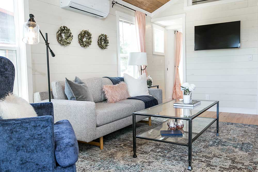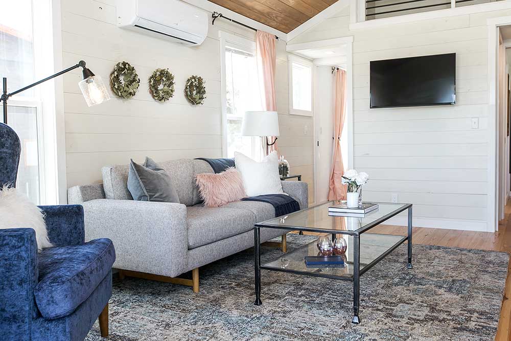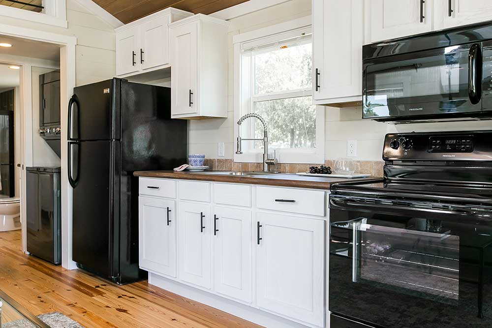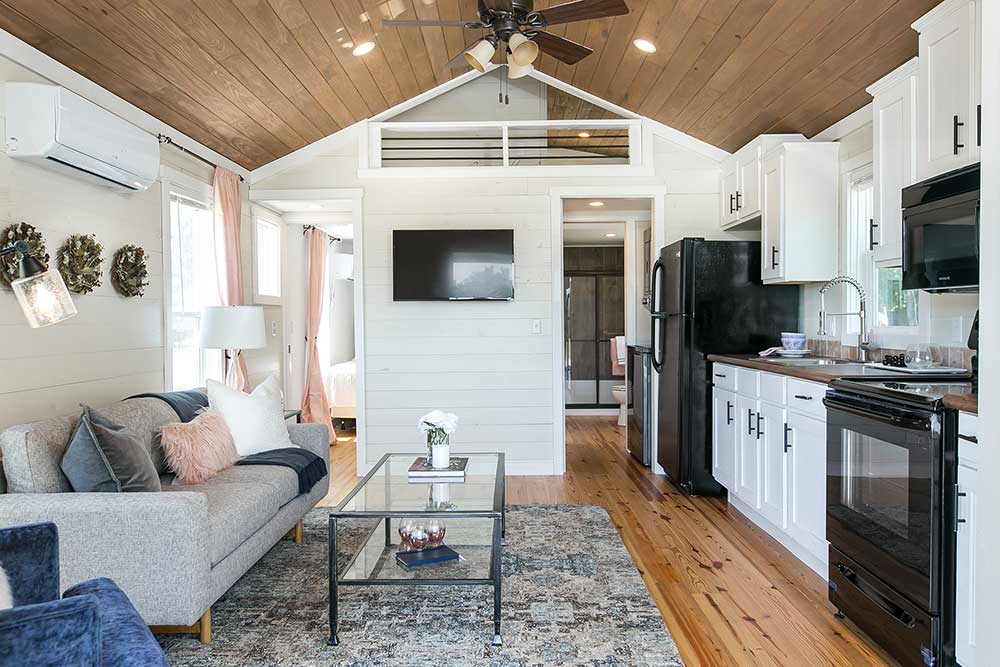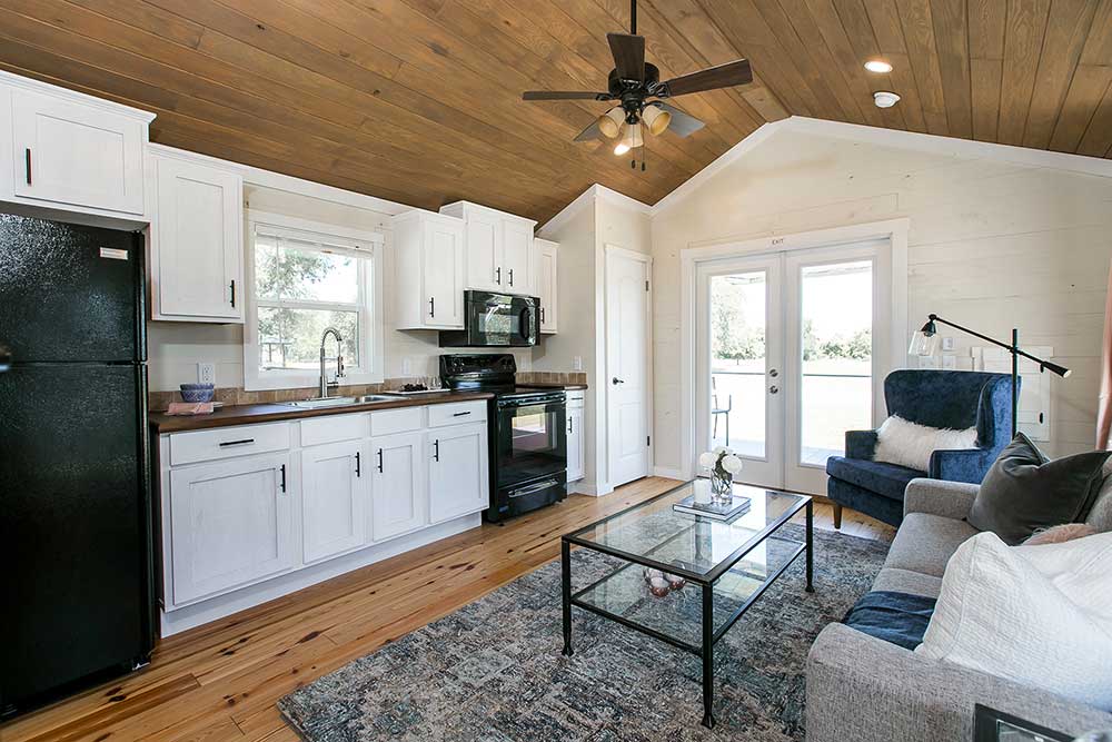 The Sipsey Park Model utilizes an open floor plan to create a bright and inviting living space. The kitchen and living area lead into the master bedroom and spacious bathroom, complete with a 60” fiberglass shower. The large loft is easily accessed by a short and child-friendly staircase. The Berry will comfortably fit up to six during your next weekend getaway.