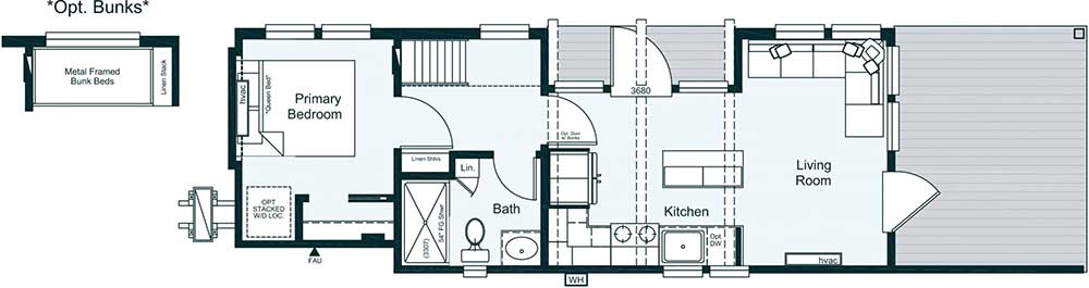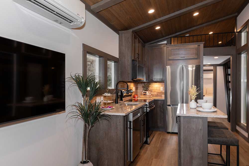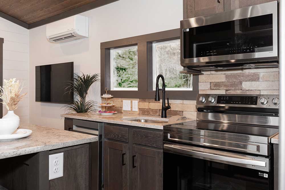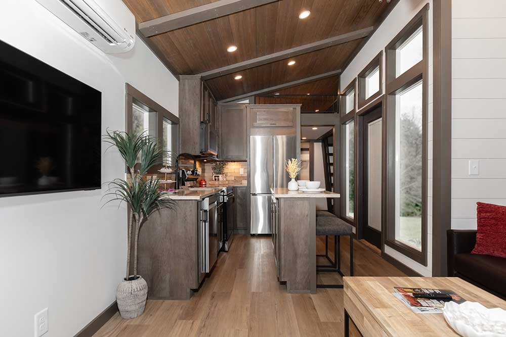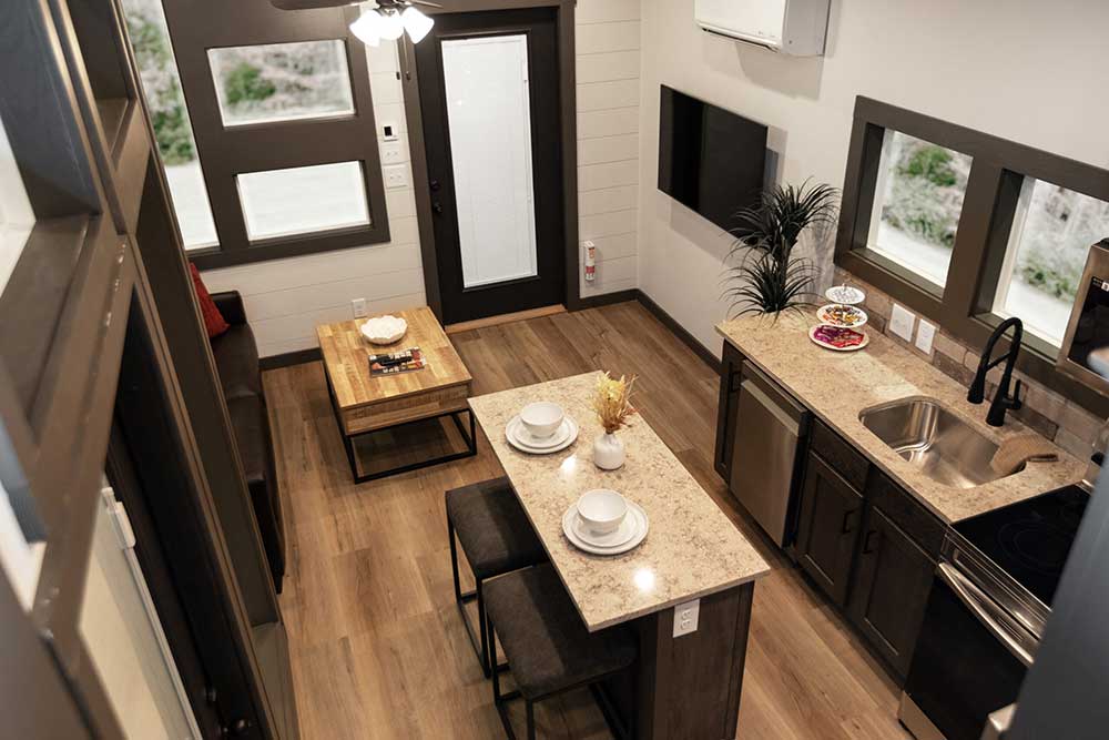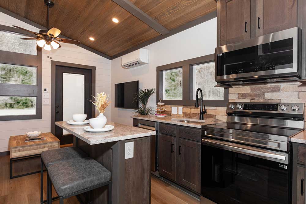 The Skyway – a tiny home with a view! This beautiful park model has different-sized windows that let the natural light in. You’ll find unique views in almost every room as every detail of this floor plan has been carefully designed and constructed. Ideal for the perfect getaway at any of Alabama’s natural wonders, like Logan Martin, Neely Henry or another beautiful lake, or up in the mountains, on Cheaha, Lookout Mountain near Fort Payne and Mentone, and places like Heflin or Ashville.